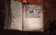 Battle Cry is an Ironheade solo that buffs nearby units to deal extra damage. Eddie learns the solo by reading it from the inscription on Lars' sword of the same name.