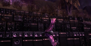The Screaming Wall itself is a massive wall made of speakers and amplifiers, which sporadically blasts out sound, due to a sound loop created by the nearby seagulls, all of which have microphones for bodies, posing a danger to those who venture too close. The wall stretches out from a mountain range into the sea, and can be seen from the Northern coast line. The player can reach the Screaming Wall via a narrow strip of land between the ocean and the side of a volcano, from which lava occasionally spews. This narrow strip of land is decorated with amp and speaker cables.