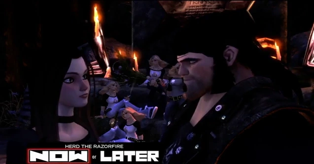 - The title of this mission ("To the Slaughter") is likely a reference to the song "Bring Your Daughter... to the Slaughter" by Iron Maiden. However, it could also be a reference to the common saying "Lead lambs to the slaughter". There is strong support for the latter possibility, as the mission entails herding Razofire Boars into an area where they are literally slaughtered.